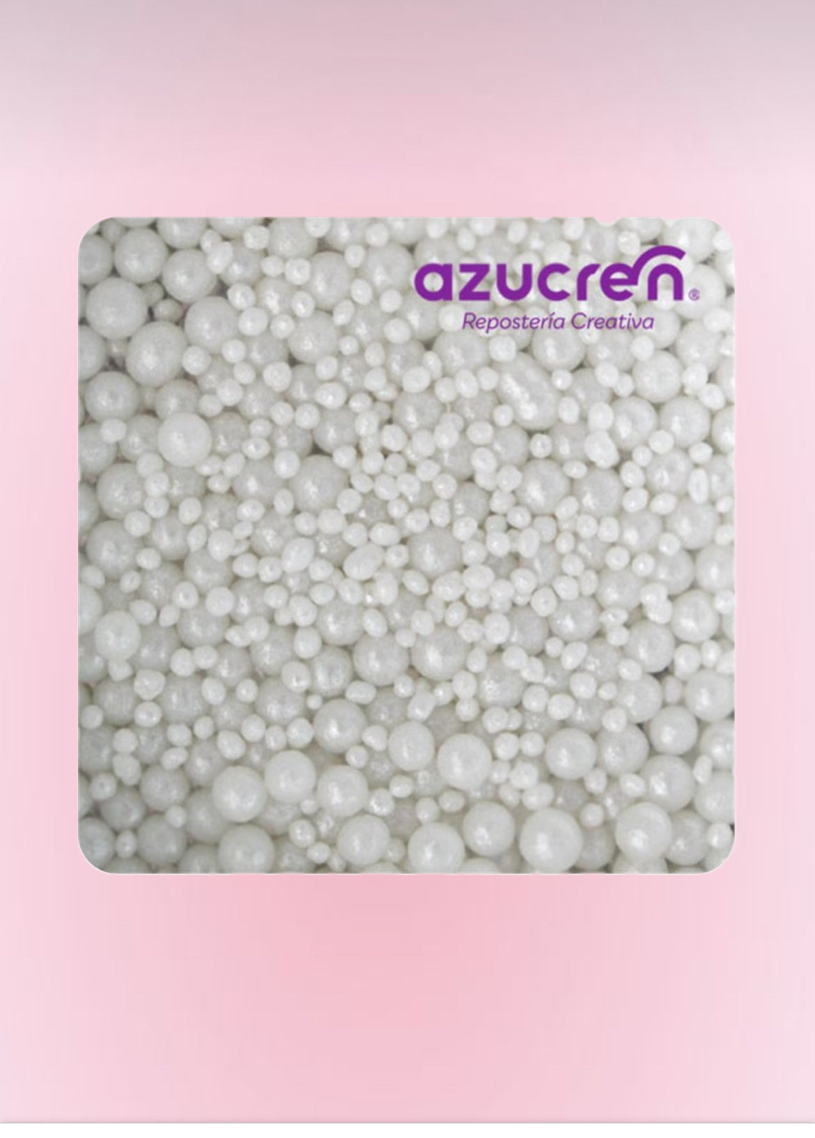 Mini perles de sucre blanches 1,5 mm + Perles blanches 4 mm – 90g – AZUCREN