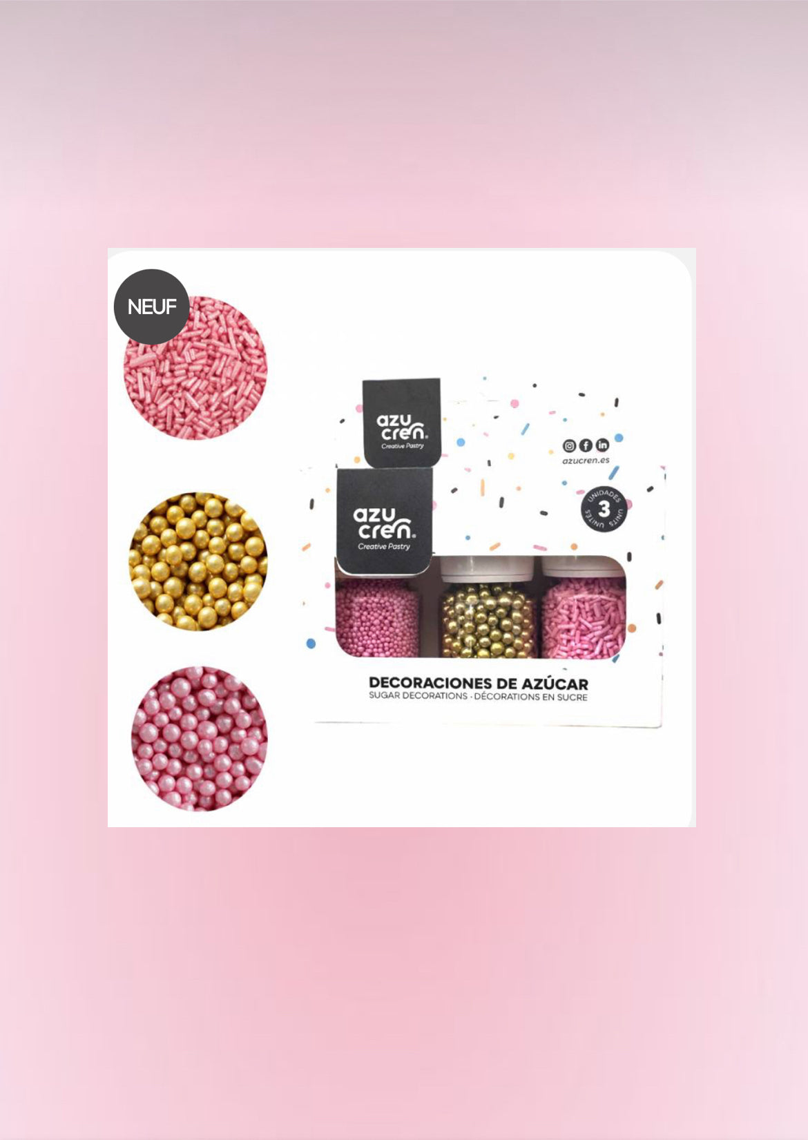 Apportez une touche de glamour et de douceur à vos pâtisseries avec ce set de décorations signé AZUCREN. Il combine trois types de toppings pour un effet visuel riche et varié :